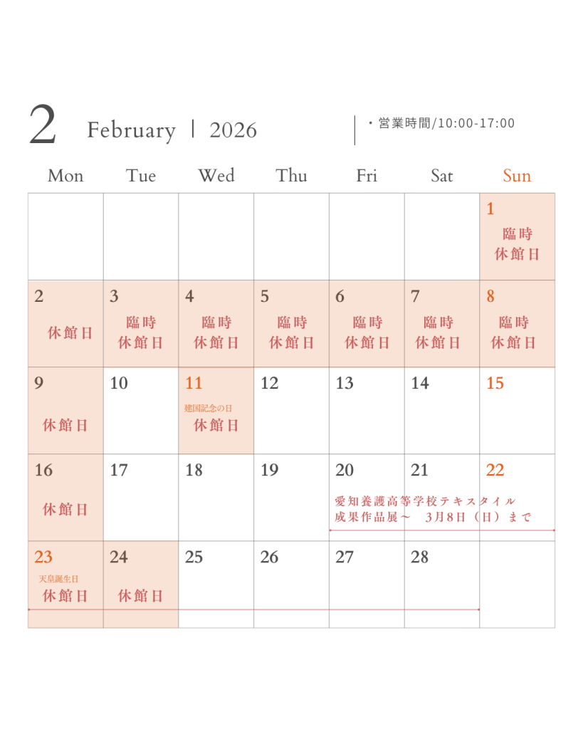 出店等により2月は休館日が多くなっております。